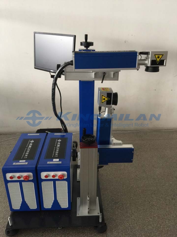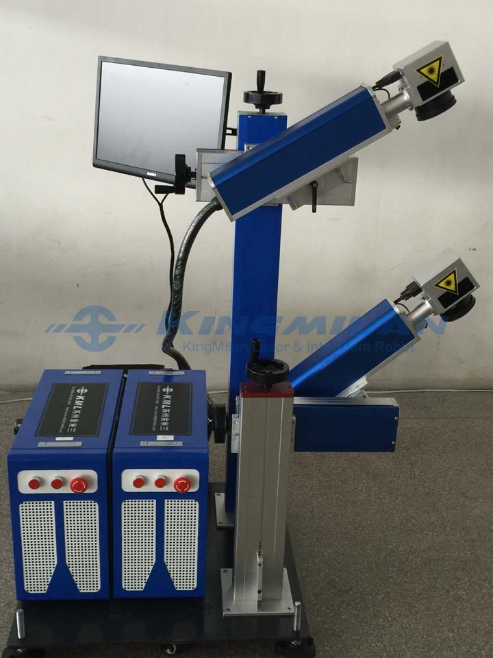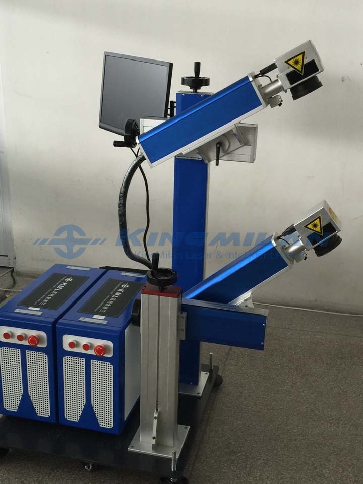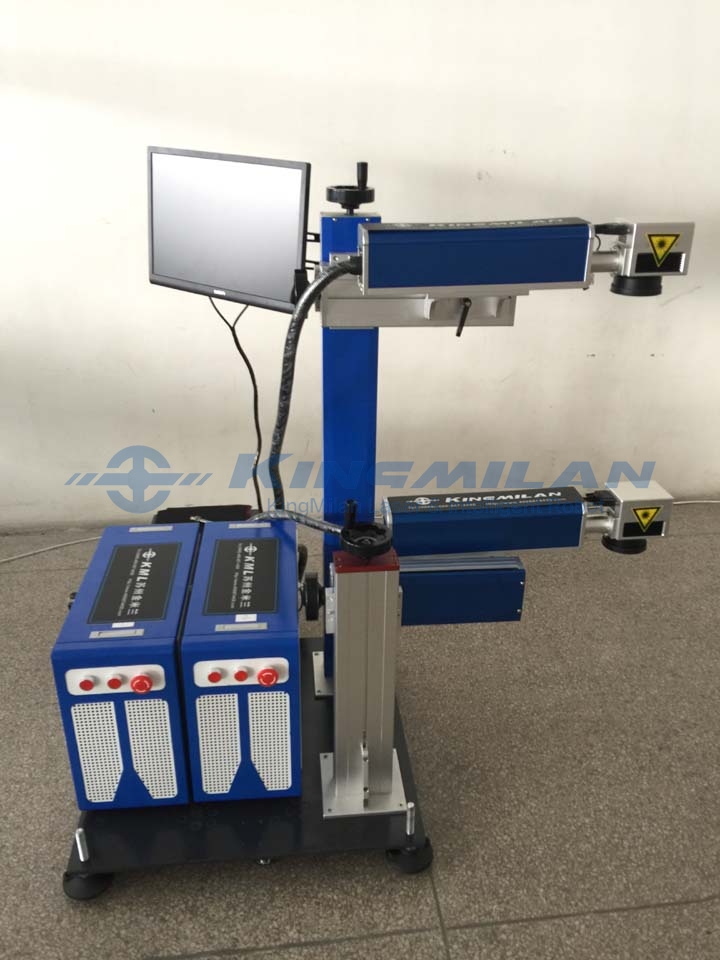 One machine and two stations marking, using the latest hardware and software design, an industrial computer can achieve simultaneous control of two marking machines, can achieve the same, different content of the synchronous printing; mainly used in industrial manufacturing sites, a device or component from The two end faces (such as the upper side and the side face) are marked on-line at the same time, and the simultaneous printing can be performed from the four sides at most, so as to maximize the marking efficiency and reduce the production cost;